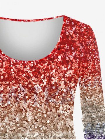 Plus Size Ombre Colorblock Sparkling Sequin Glitter 3D Print Long Sleeve T-shirt - Multi-a - 1x
