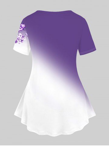 Plus Size Ombre Floral Print Short Sleeve T-shirt - Purple - 1x | Us 14-16