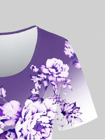 n*****i5Ombre Floral Print Short Sleeve Tee and Capri Leggings Plus Size Summer OutfitColor: LIGHT PURPLEmotif superbes et bonne taille
