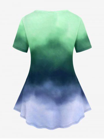 Plus Size Ombre Galaxy Print Short Sleeves T-shirt - Green - 4x