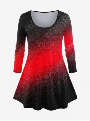 k*****y4Plus Size Ombre Light Beam Print T-shirtColor: RED Size: Mfits perfectly, true to size. fabric is nice. color is nice and bold.