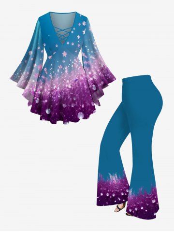 Graphic Tees > Plus Size Ombre Stars Painting Splatter Print Lattice Long Sleeves T-shirt