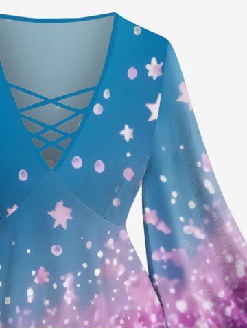 Plus Size Ombre Stars Painting Splatter Print Lattice Long Sleeves T-shirt - Multi-a - M