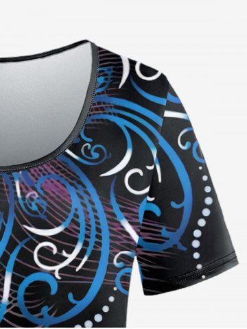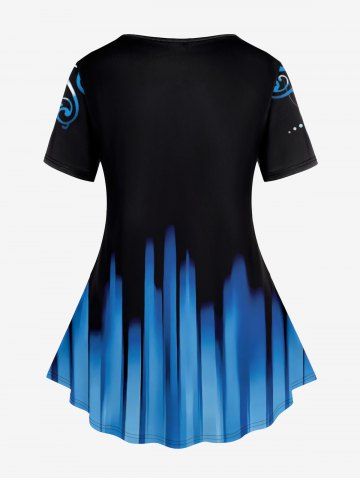 Plus Size Ombre Vintage Figure Print Short Sleeves T-shirt - Blue - 2x