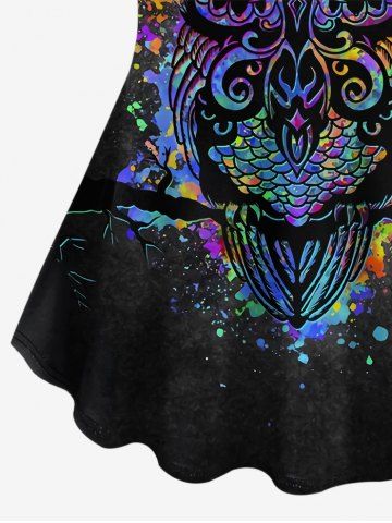 Plus Size Owl Paint Splatter Ombre Distressed Colorblock Print T-shirt - Black - 5x