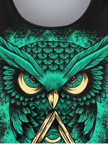 Plus Size Owl Skeleton Print T-shirt - Green - L