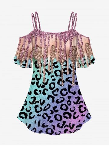 Graphic Tees > Plus Size Paint Drop Blobs Leopard Glitter Sparkling Sequin 3D Print Cold Shoulder T-shirt