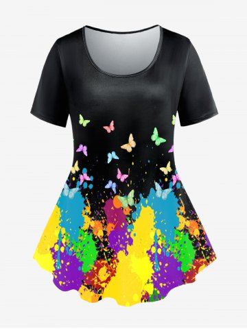 k*****i5Plus Size Paint Splatter Butterfly Pattern Short Sleeves TeeColor: BLACK Size: 4X | US 26-28love this shirt its so beautiful and colorful definitely one of my favorites