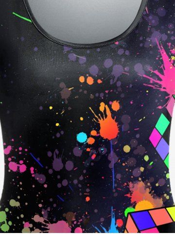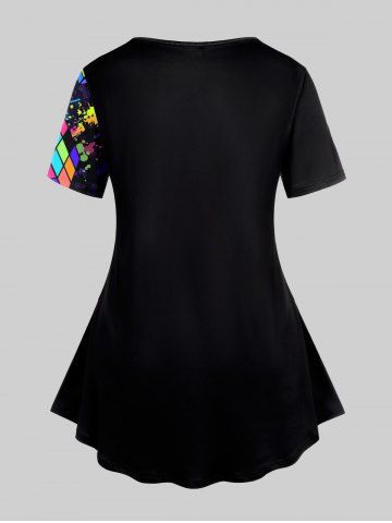Plus Size Paint Splatter Magic Cube Printed Short Sleeves Tee - Black - 5x | Us 30-32
