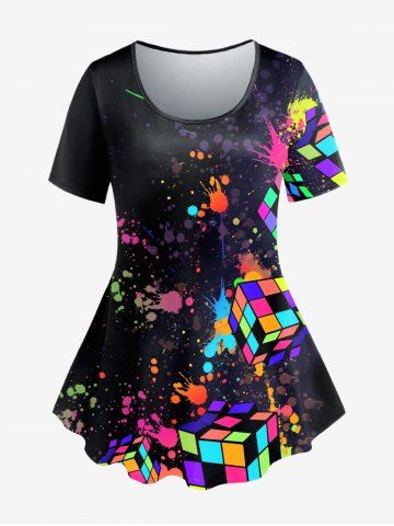 Graphic Tees > Plus Size Paint Splatter Magic Cube Printed Short Sleeves Tee