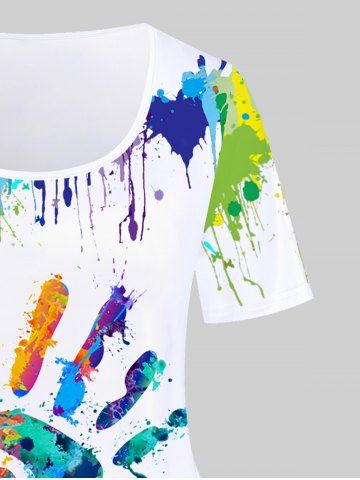 d*****e4Paint Splatter Palm Printed Tee and Leggings Plus Size Matching Set OutfitColor: WHITEi liked this outfit so much I ordered the matching pants to the top but in white to go together it's a shiny slippery material the only con is the pants are lined in white so when they stretch the white shows through the black doesn't look nice is all I'm saying
