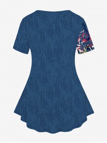 Plus Size Paint Splatter Pockets Buttons Denim 3D Print T-shirt - Deep Blue - M