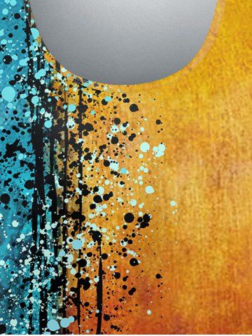Plus Size Painting Splatter Patchwork Print Ombre T-shirt - Blue - 1x