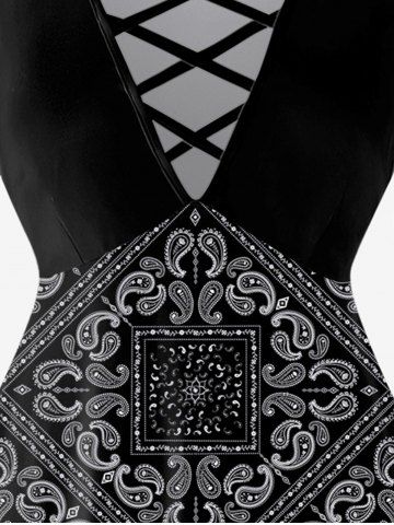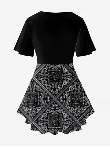 Plus Size Paisely Printed Crisscross Short Sleeves T-shirt - Black - 2x | Us 18-20
