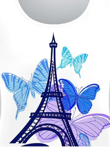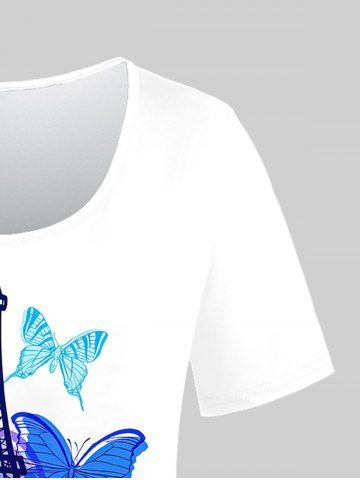Plus Size Paris Eiffel Tower Butterfly Printed Short Sleeve Tee - White - 1x | Us 14-16