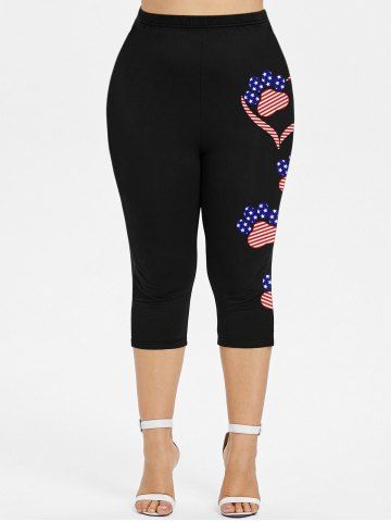 Plus Size Patriotic American Flag Heart Cat Paw Print Capri Leggings - Black - 3x | Us 22-24