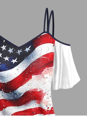 Graphic Tees > Plus Size Patriotic American Flag Painting Splatter Print Cold Shoulder Cami T-shirt