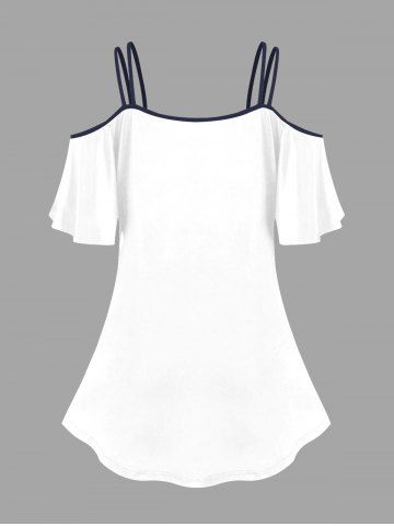 Plus Size Patriotic American Flag Painting Splatter Print Cold Shoulder Cami T-shirt - White - 4x