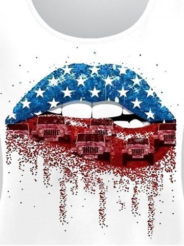 Plus Size Patriotic American Flg Lip Printed Short Sleeves Tee - White - M | Us 10