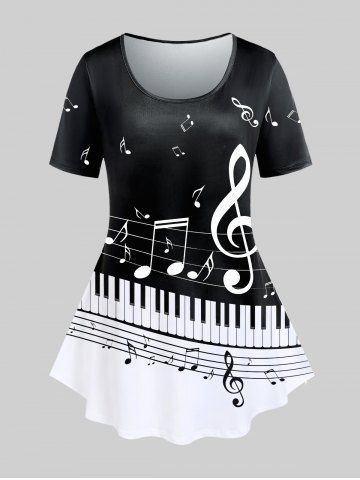 R*****r5Plus Size Piano Key Musical Notes Print TeeColor: BLACK Size: 1X | US 14-16Love love love this one. The length is perfect. The pattern is so beautiful. Fits wonderfully and keeps cool in the warmer days