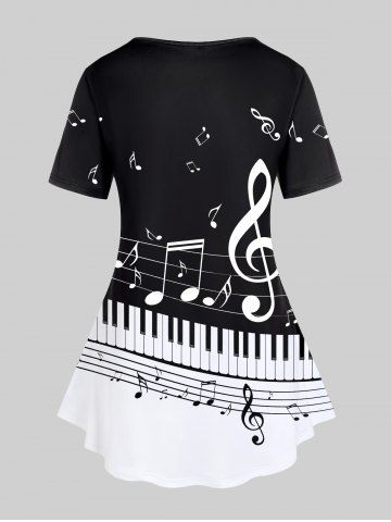 R*****r5Plus Size Piano Key Musical Notes Print TeeColor: BLACK Size: 1X | US 14-16Love love love this one. The length is perfect. The pattern is so beautiful. Fits wonderfully and keeps cool in the warmer days