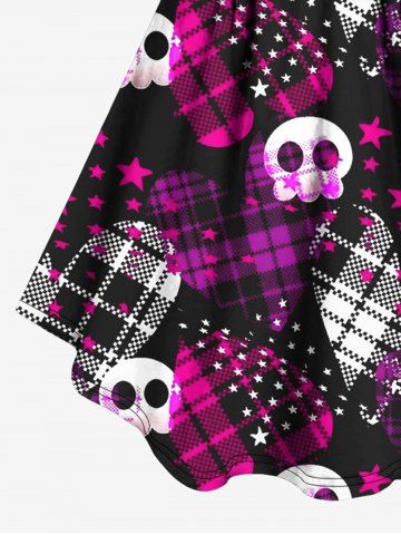 Plus Size Plaid Heart Cute Skull Stars Print Ruched T-shirt - Purple - 3x