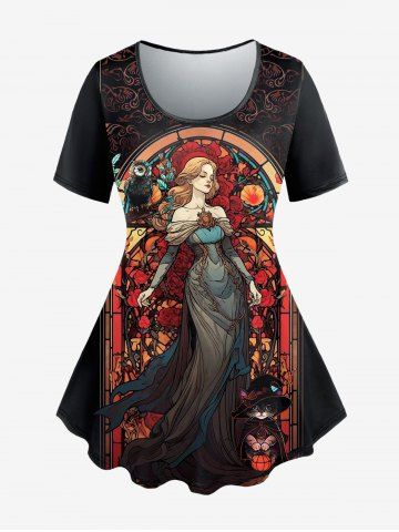 N*****e5Plus Size Princess Flower Window Owl Cat Print T-shirtColor: RED Size: 1Xmerci
