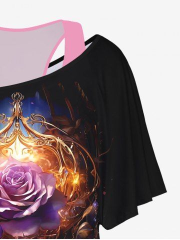 Graphic Tees > Plus Size Racerback Tank Top and Rose Flower Glitter Gem Tassel 3D Print T-shirt
