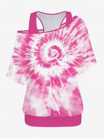 Plus Size Racerback Tank Top and Spiral Tie Dye Print Batwing Sleeve T-shirt - Light Pink - M