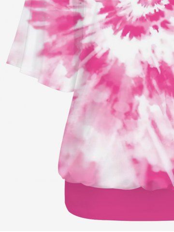 Plus Size Racerback Tank Top and Spiral Tie Dye Print Batwing Sleeve T-shirt - Light Pink - 2x
