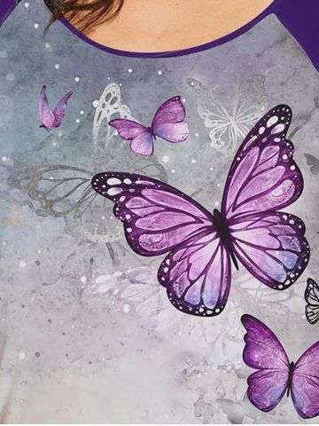 w*****t5Plus Size Raglan Sleeve Butterfly Print TeeColor: PURPLE Size: 4X | US 26-28I really like this shirt it’s very comfortable