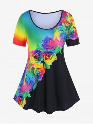 Plus Size Rainbow Color Rose Print Valentines Tee