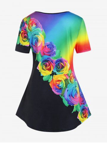N*****e5Plus Size Rainbow Color Rose Print Valentines TeeColor: BLACK Size: 1X | US 14-16The colors are bright and vibrant.. I love roses... the material is soft silky and stretchy..