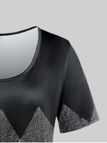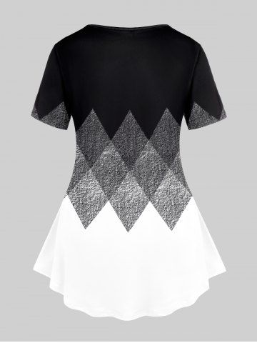 Plus Size Rhombus Printed Colorblock Short Sleeves Tee - Black - S | Us 8