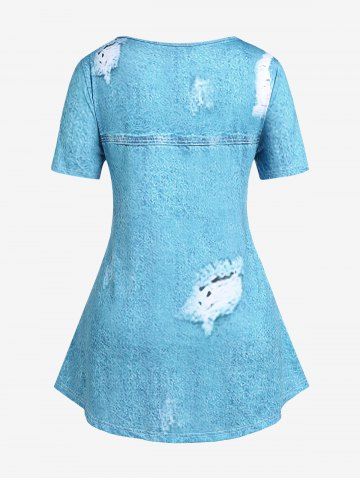Plus Size Ripped Denim 3D Print T-shirt - Blue - 4x | Us 26-28