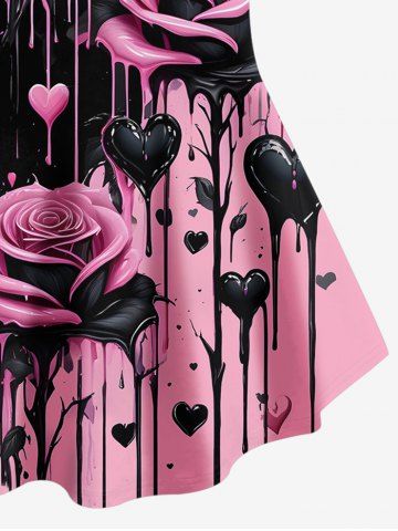 Graphic Tees > Plus Size Rose Flower Heart Paint Drop Blobs Colorblock Print T-shirt
