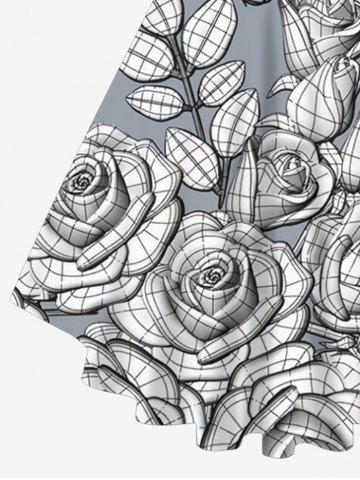 Plus Size Rose Flower Leaf Butterfly Print Crisscross Lattice Flare Sleeve T-shirt - Gray - L