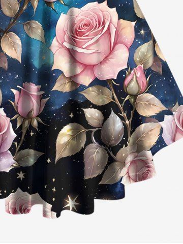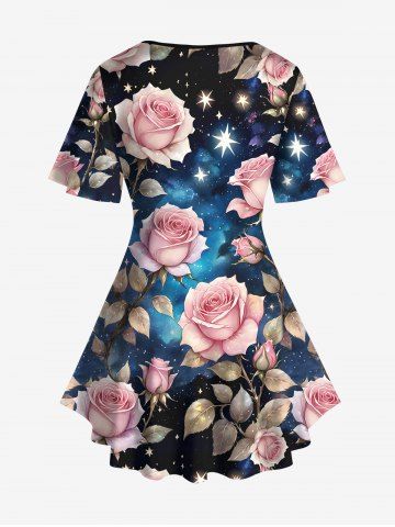 Graphic Tees > Plus Size Rose Flower Leaf Galaxy Star Glitter 3D Print Lattice Crisscross Flare sleeve T-shirt
