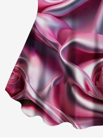 Plus Size Rose Flower Silk 3D Print T-shirt - Red - L