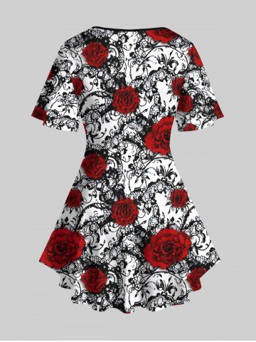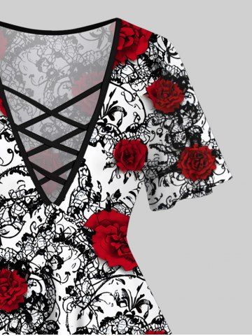 Graphic Tees > Plus Size Rose Flower Vine Print Lattice T-shirt