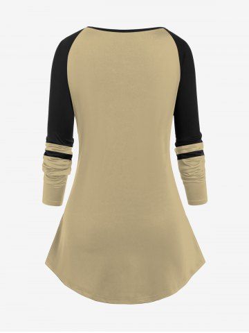Plus Size Rose Flowers Leaf Colorblock Print Raglan Sleeve T-shirt - Light Coffee - Xs