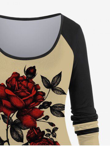 Graphic Tees > Plus Size Rose Flowers Leaf Colorblock Print Raglan Sleeve T-shirt