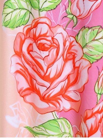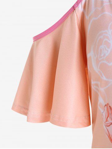 Plus Size Rose Print Colorblock Cold Shoulder Tee - Light Pink - 1x | Us 14-16