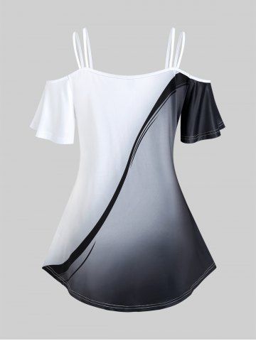 Plus Size Rose Print Colorblock Cold Shoulder Tee - Black - 1x | Us 14-16