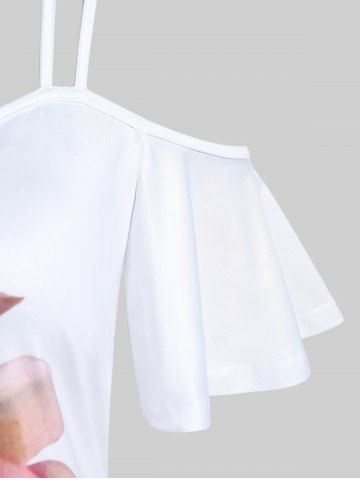 Graphic Tees > Plus Size Rose Print Colorblock Cold Shoulder Tee