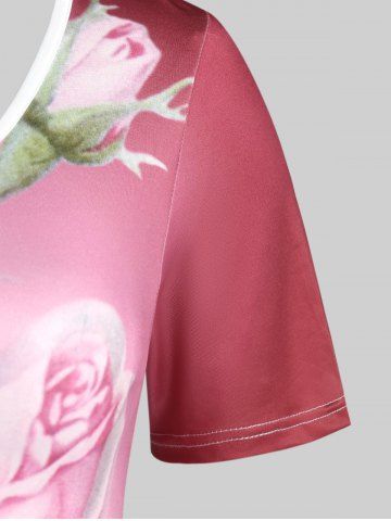 B*****x4Plus Size Rose Print Ombre Color TeeColor: RED Size: L | US 12True to size. Love the pattern and the colour. It is very comfortable to wear and feels good quality.