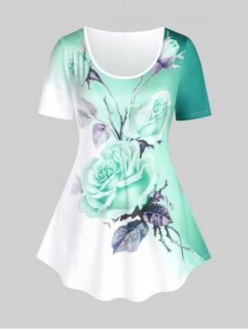 Plus Size Rose Print Ombre Color Tee