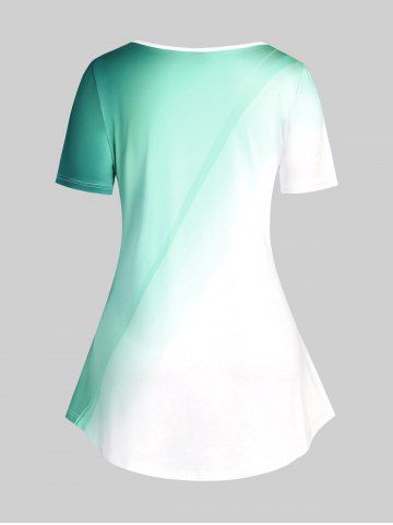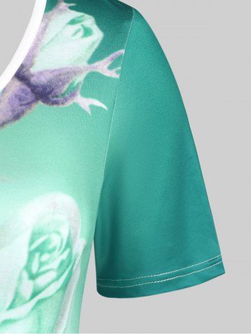 Plus Size Rose Print Ombre Color Tee - Green - 2x | Us 18-20