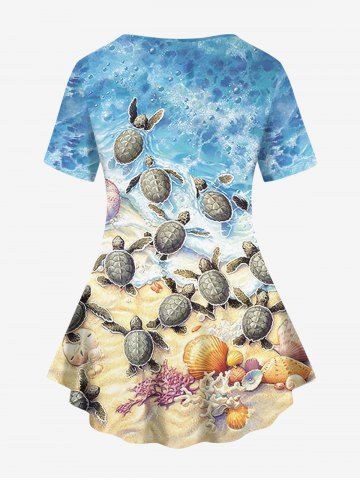 Plus Size Sea Beach Starfish Turtle Shell Print T-shirt - Multi-a - 1x