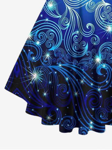 Plus Size Sea Waves Glitter 3D Print Lattice Crisscross Flare Sleeve T-shirt - Deep Blue - M